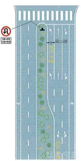 接近车行道中障碍物标线设置示例