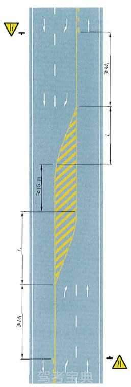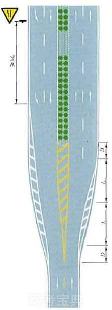 四车行道变为双车行道渐变段标线设置示例