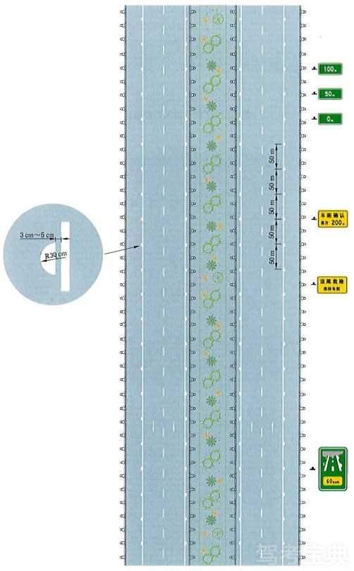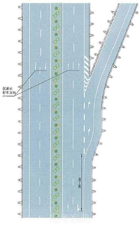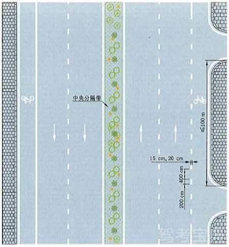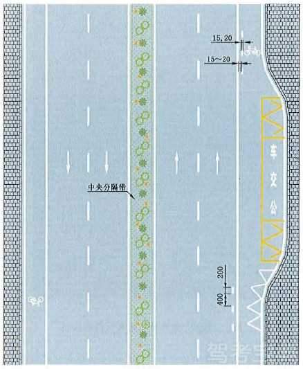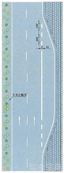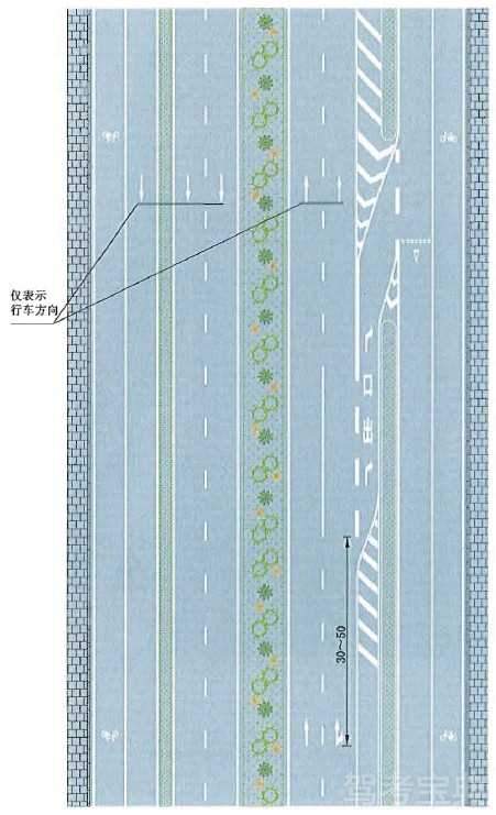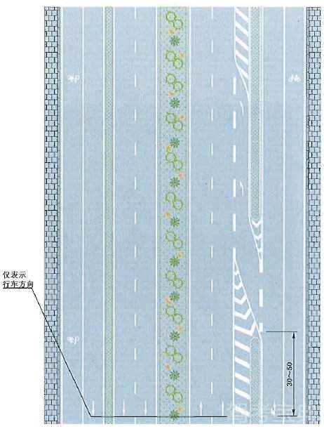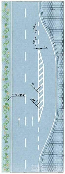 接近实体中央分隔带标线设置示例