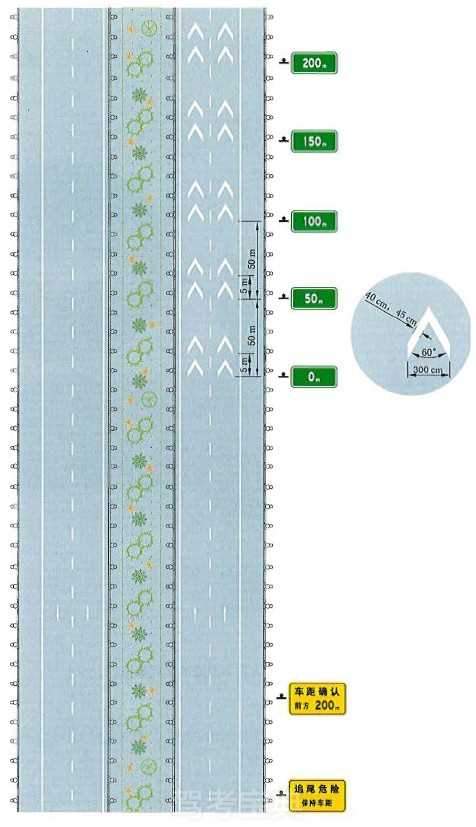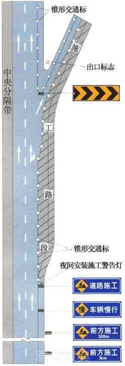 高速公路出口三角地带附近施工时的设施布设例