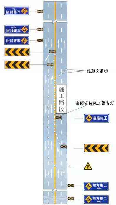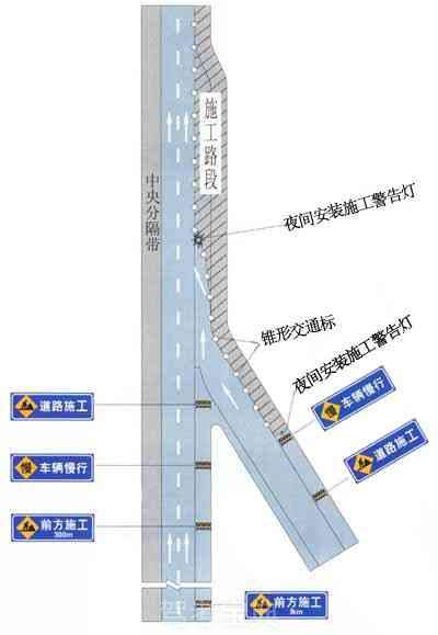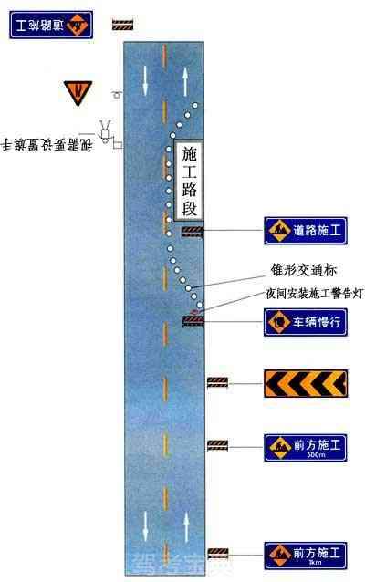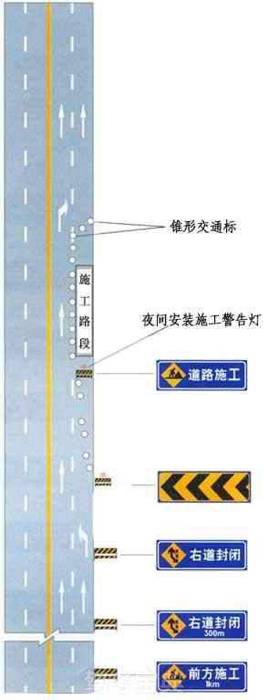 同向车道中有一条车道路面施工时设施布设例